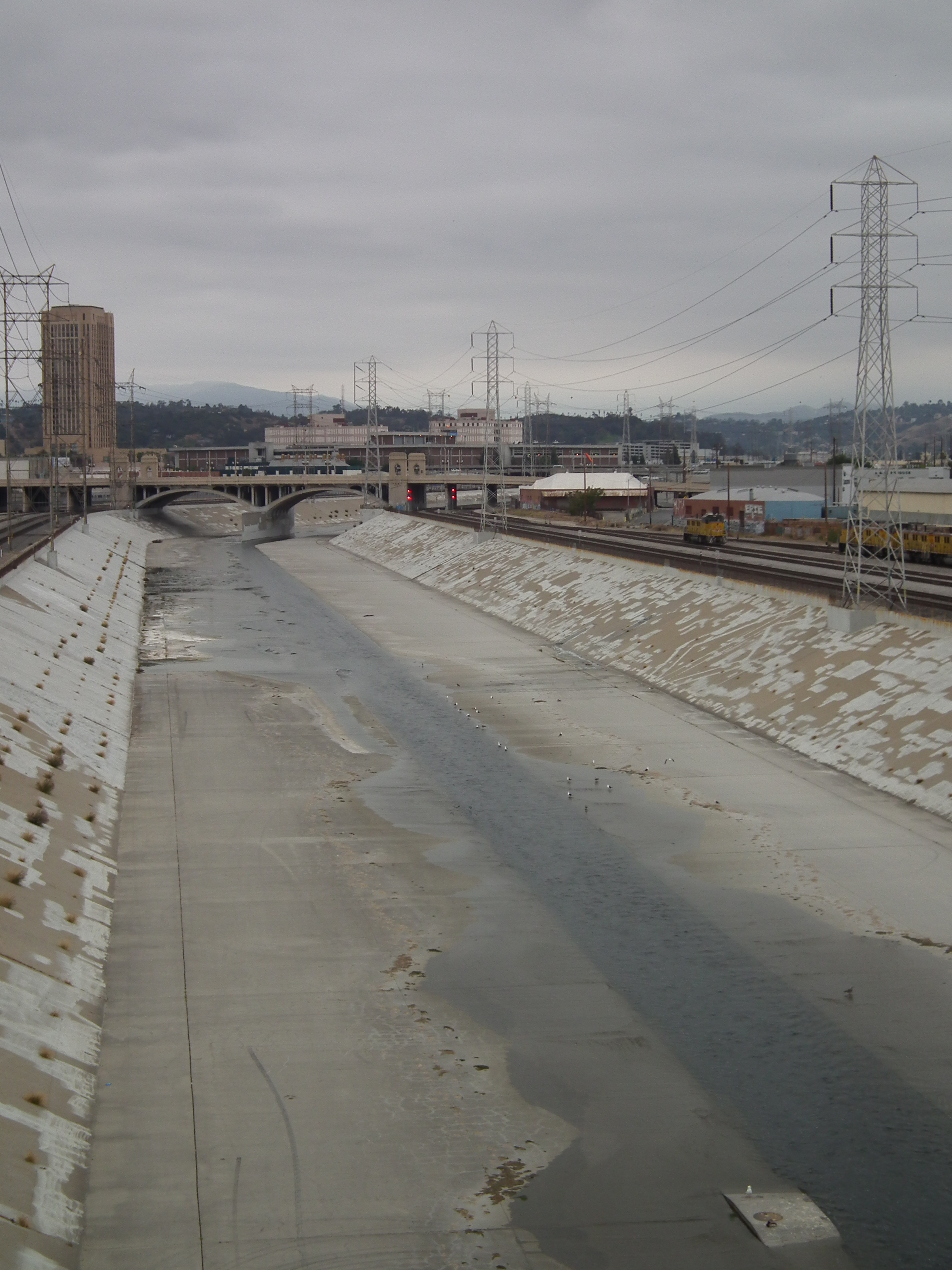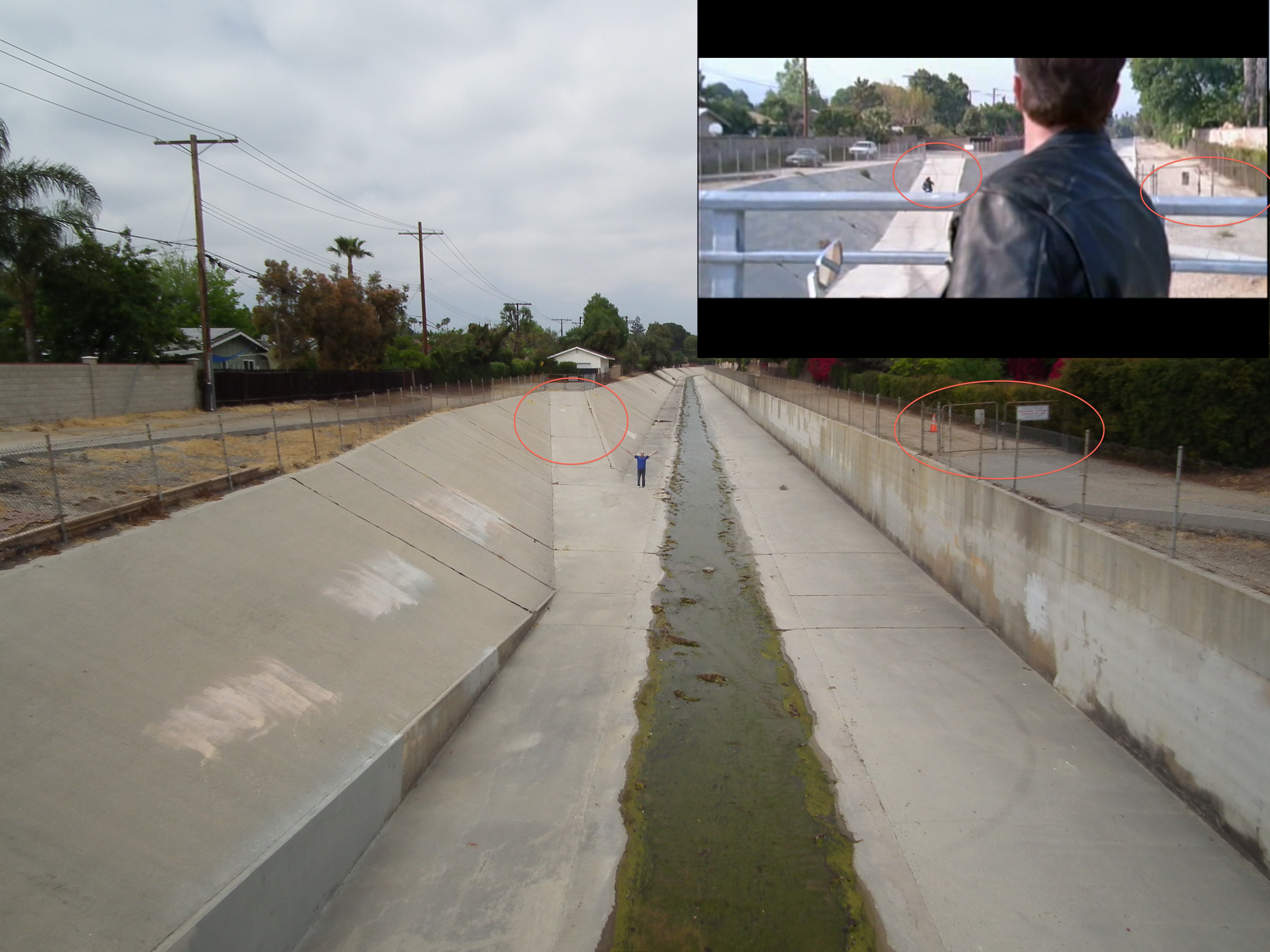 This is what Rupert and I were most looking forward to – the infamous storm drains of the Los Angeles River. They look stunning, and are one of the iconic pieces of LA’s urban geography. Their brutalist form, naturistic intentions but linear aesthetics make for a spell-binding location. They rip through the LA sprawl culminating in the vast basin of the LA river just East of downtown. John Connor’s use of the storm drains in Terminator 2 are clearly part of his rebellious interaction with the city (as we found out, it is illegal to go into these drains), and the chase scene with the T1000 in the truck is, for me, one the most thrilling and (back then) innovative chase scenes of all time. We spent a bit of time photographing (and trying to get into) these drains, pinpointing the exact locations of some of the main bits from the film. We didn’t get them all, but were very satisfied with seeing the beauty of these drains. Hence, below are some of the locations from the film, and also some photos from the wider basin which has been the location for many many films and TV series over the years.