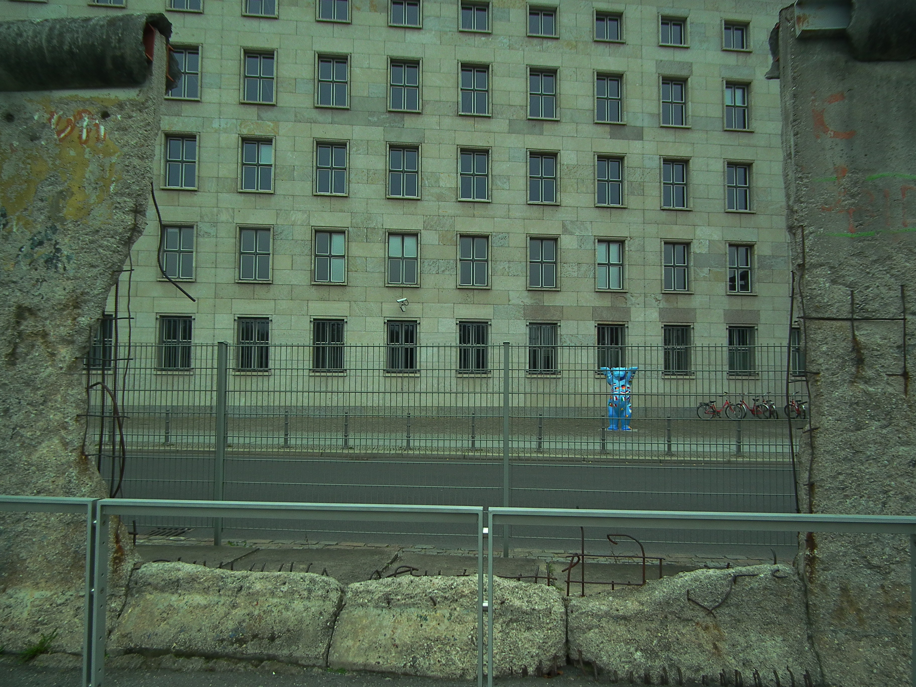 The Wall’s most in tact section (that I saw anyway) was manicured into a museum. Perhaps in an attempt to distract from the fact that the modern day city (not just Berlin) contains similar processes of hegemonic control as it once did? Sure, they’re now smaller, they can be fixed to the side of a building and controlled from a nerve centre far away, but a CCTV camera (in the middle of the picture above) can be just as affective in controlling movement as a wall.