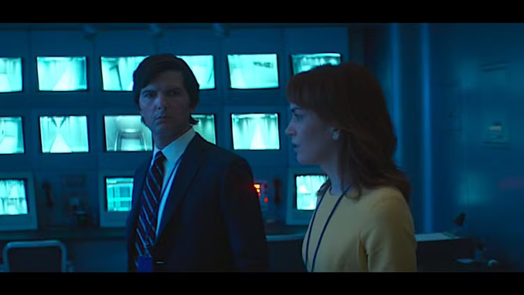 Contrast this with the world of ‘outies’: the employees’ suburban homes are neat, warm-toned, although oppressive in their own way. Mark’s outie life is one of scripted grief and shallow domestic comfort. Hence, the exteriors here are not refuge but façade. In classic Marxist terms, the home becomes a site of false consciousness, a place that soothes the worker without liberating them. For the severed, the outside world offers no escape: it is simply another level of the simulation.
