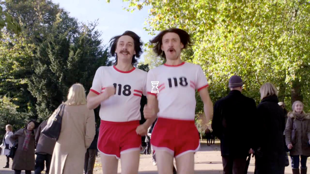 Enter the infamous 118 118. Marketed by two moustachioed men in retro athletic wear, jogging through a cultural landscape that no longer required their service. These characters were pure hauntology: ghosts of a bygone era of certainty and legibility, now recycled into a loop of ironic repetition often parodying film sequences, and in some cases, even roping in guest appearances from the cultural icons themselves (Ray Parker Jnr as a bus conductor because why not?) They weren’t just marketing a phone number; they were performing a pastiche of collective memory because the service, they must have known, was ultimately redundant because of the spectre of Google on the horizon (which by then was already an established server of free information, albeit while tethered to desktop computer). Even some of their later adverts tried to posit them as ‘quicker’ than waiting for mobile data.